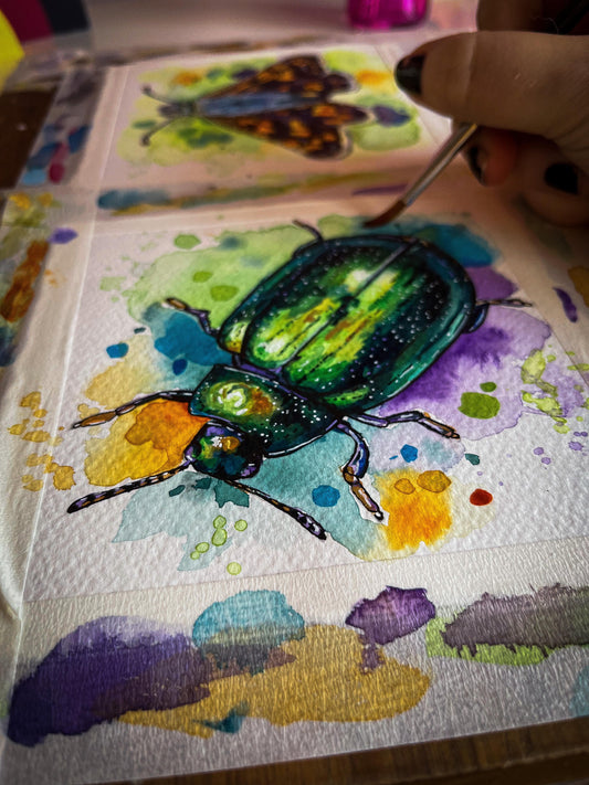 Colourful Beetle Watercolour Painting - Lydia