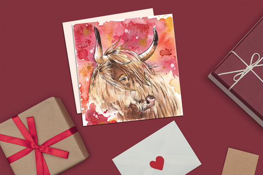 Red Highland Cow Greetings Card