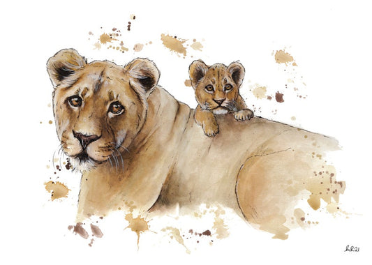 Lioness and Cub Greetings Card