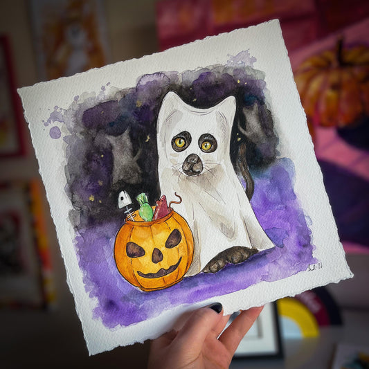 Sheet Ghost Cat Watercolour Painting - Sidney