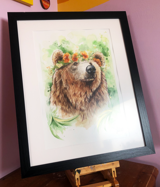Elinor | Grizzy Bear Flower Crown Watercolour Painting
