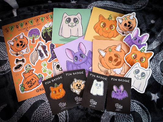 Cute Halloween Bundle - Prints, Stickers and Pin Badges