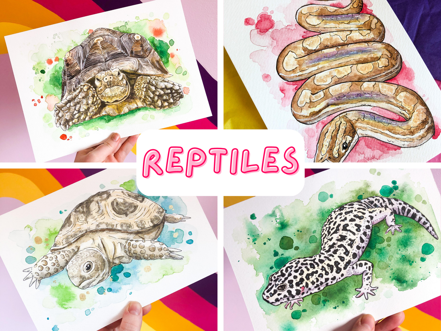 Hand painted original mixed media artwork created from bright watercolours, illustrative fine liner pen details and paint marker highlights. Created on 300gsm cold-pressed watercolour paper made from high-quality archival wood pulp. Each piece is carefully hand packaged along with a unique certificate of authenticity signed by the artist, Mairi Reid.
