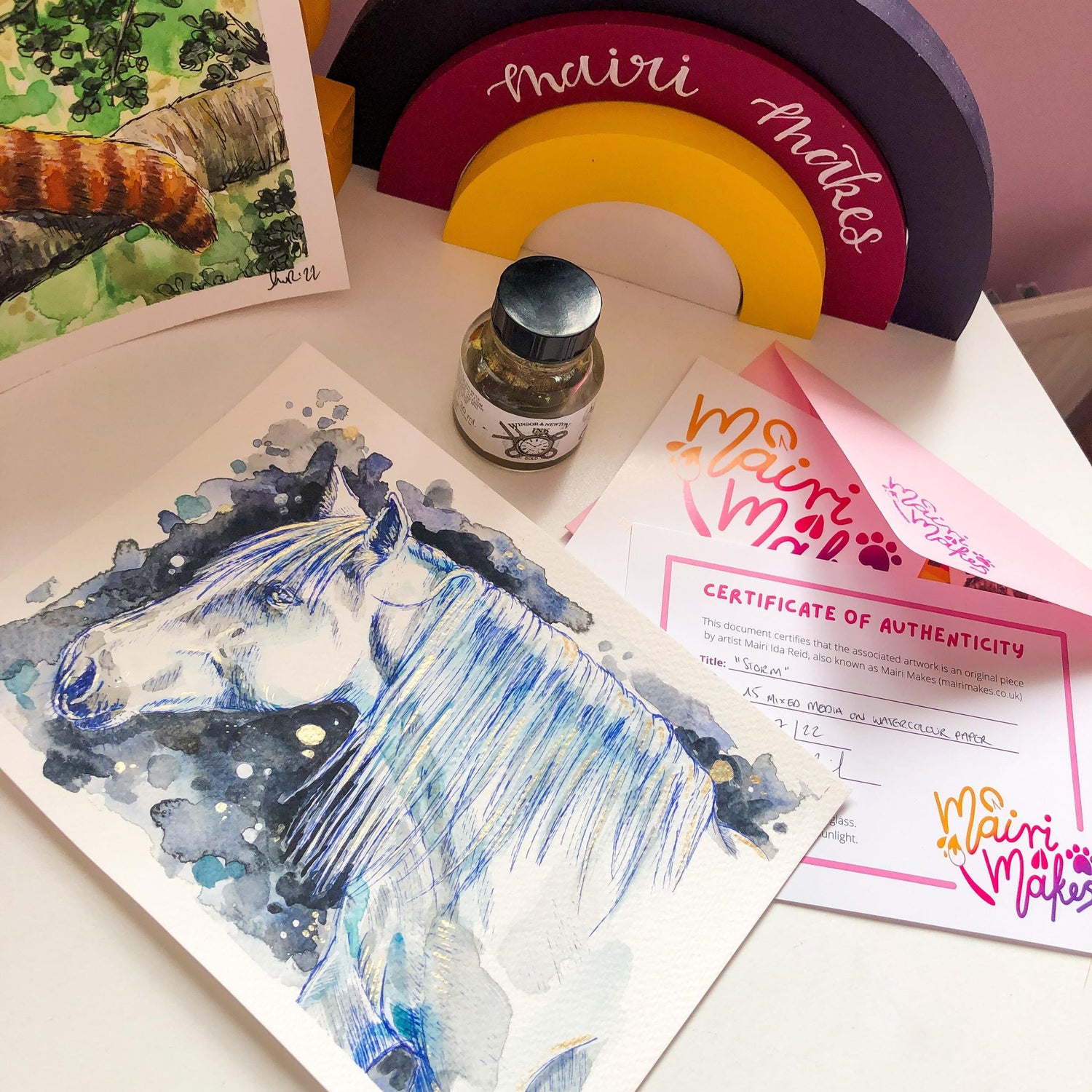 The original mixed media painting by Mairi Makes was created using watercolour paper, acrylic paints, charcoal and paint markers.